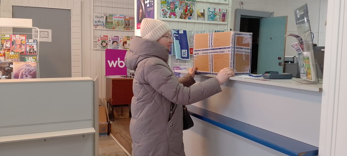На фото социальный работник Долженкова И. оказание помощи по вопросам пенсионного обеспечения и предоставление др.соц (почта).