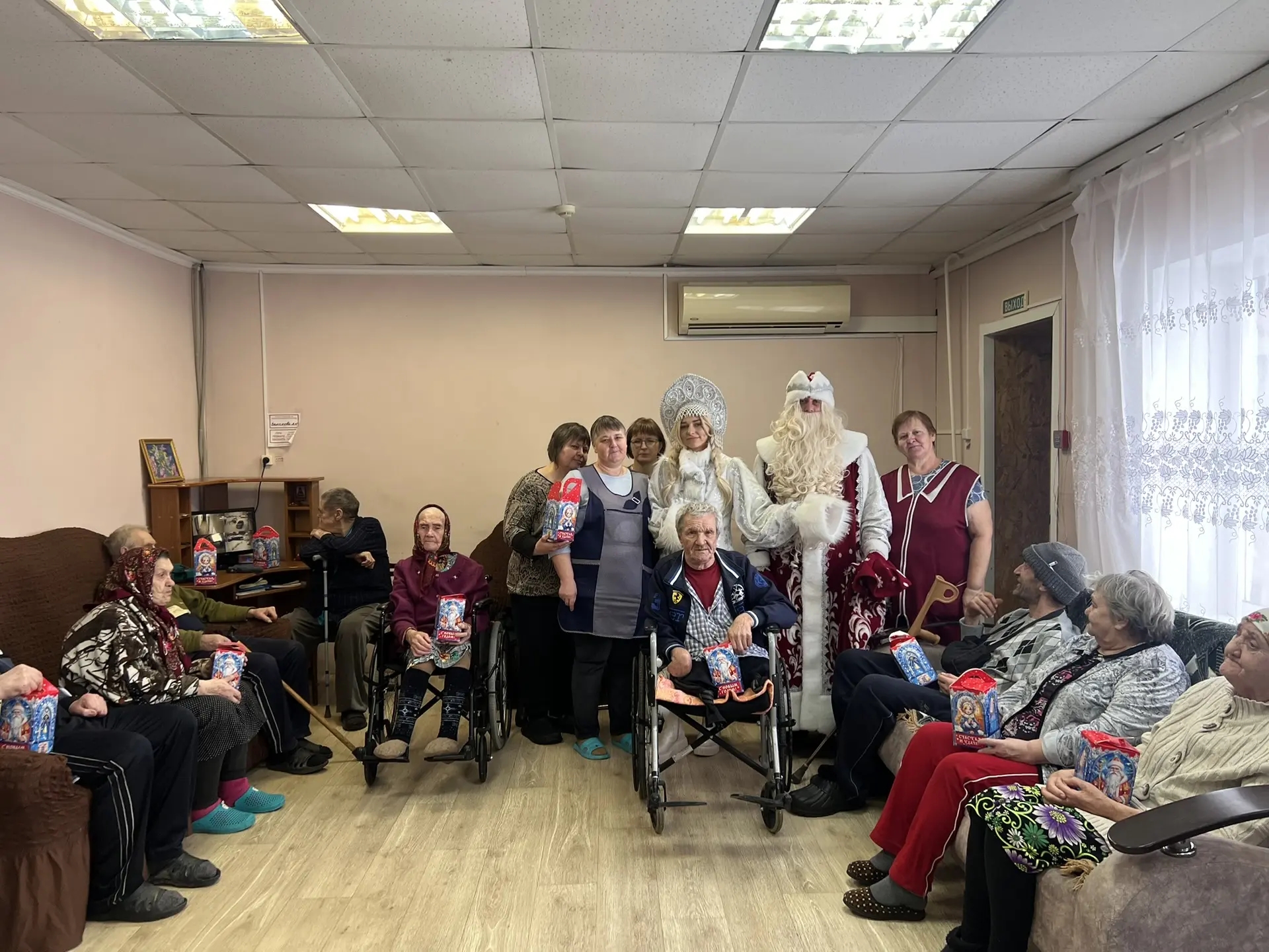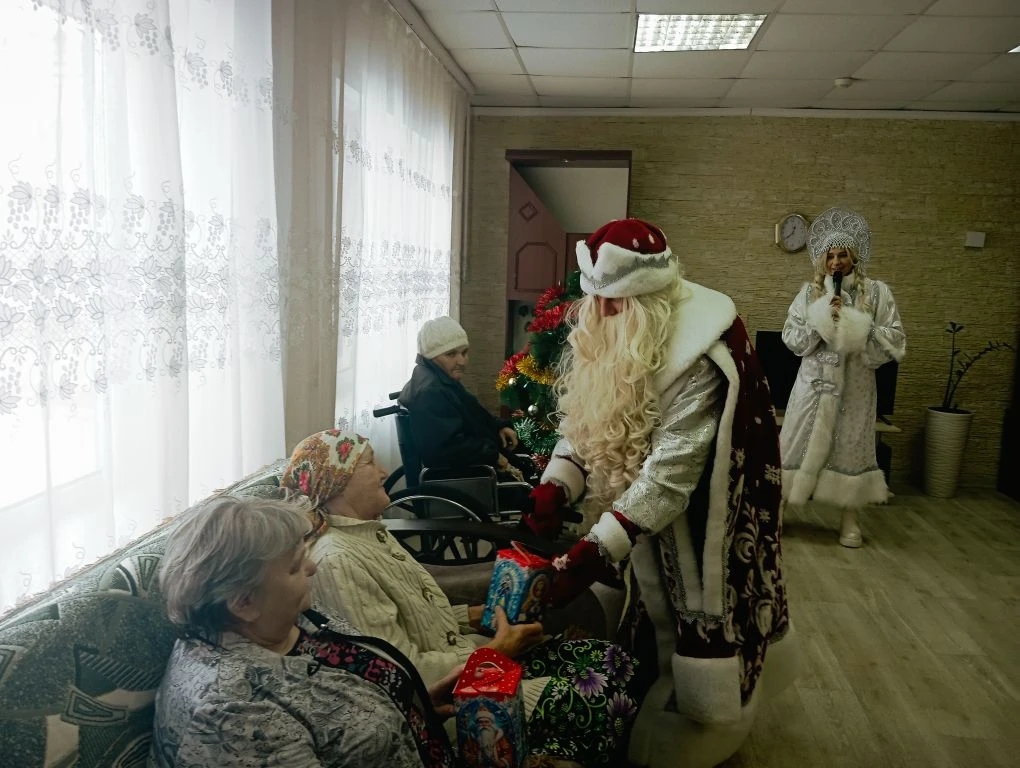 Новогодние праздники в стационарное отделение «МБУ КЦСПСиД Тамалинского района» пришли неожиданно. Дед Мороз и Снегурочка приехали поздравить бабушек и дедушек с наступающим Новым 2026 годом. Пожелали всем: Мира, добра и здоровья !!! Каждый получил от гостей сладкий подарок. Встреча прошла в дружеской семейной обстановке!!!